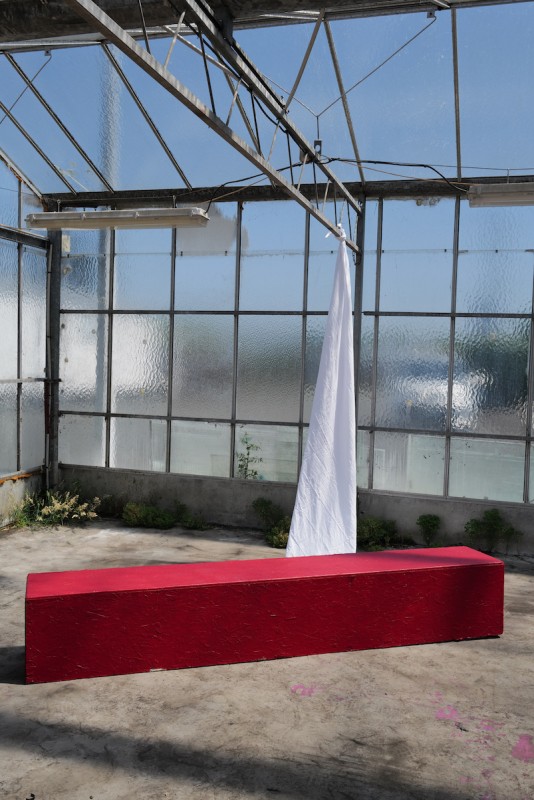 Banc en bois peint en rouge - 4 places