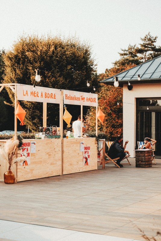 Ce comptoir en bois personnalisable allie esthétique et fonctionnalité, idéal pour servir, animer ou exposer avec style sur tous types d’événements.