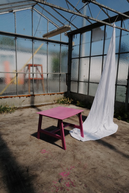 Cette table basse carrée en bois rose vif apporte une touche originale et pétillante à vos espaces lounge.